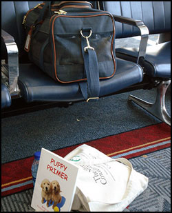 So it seemed like fate. MJ flew to Denver, attended her meeting, rented car to get the puppy, then flew with the 8 week old puppy back to Madison!