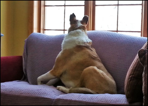 For ten years, Daisy's daily routine included sitting in our front window at 5:00pm waiting for her girl, Mary, to come home and take her for a walk . . .